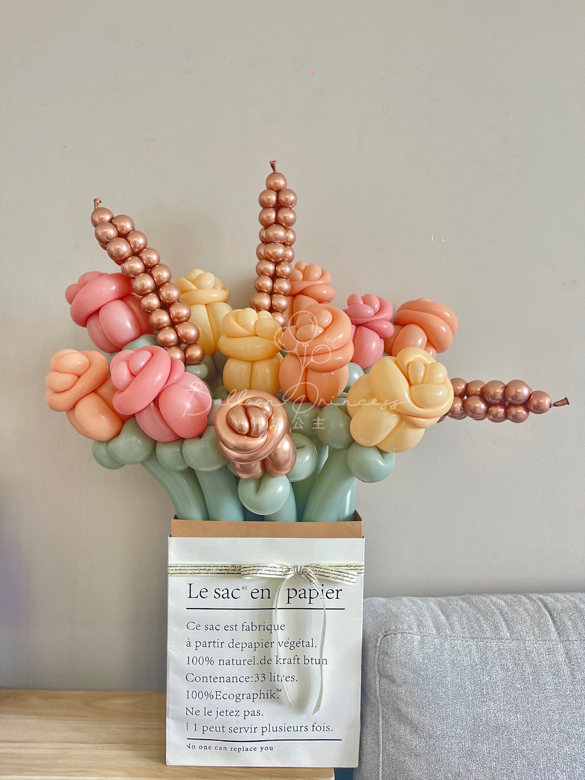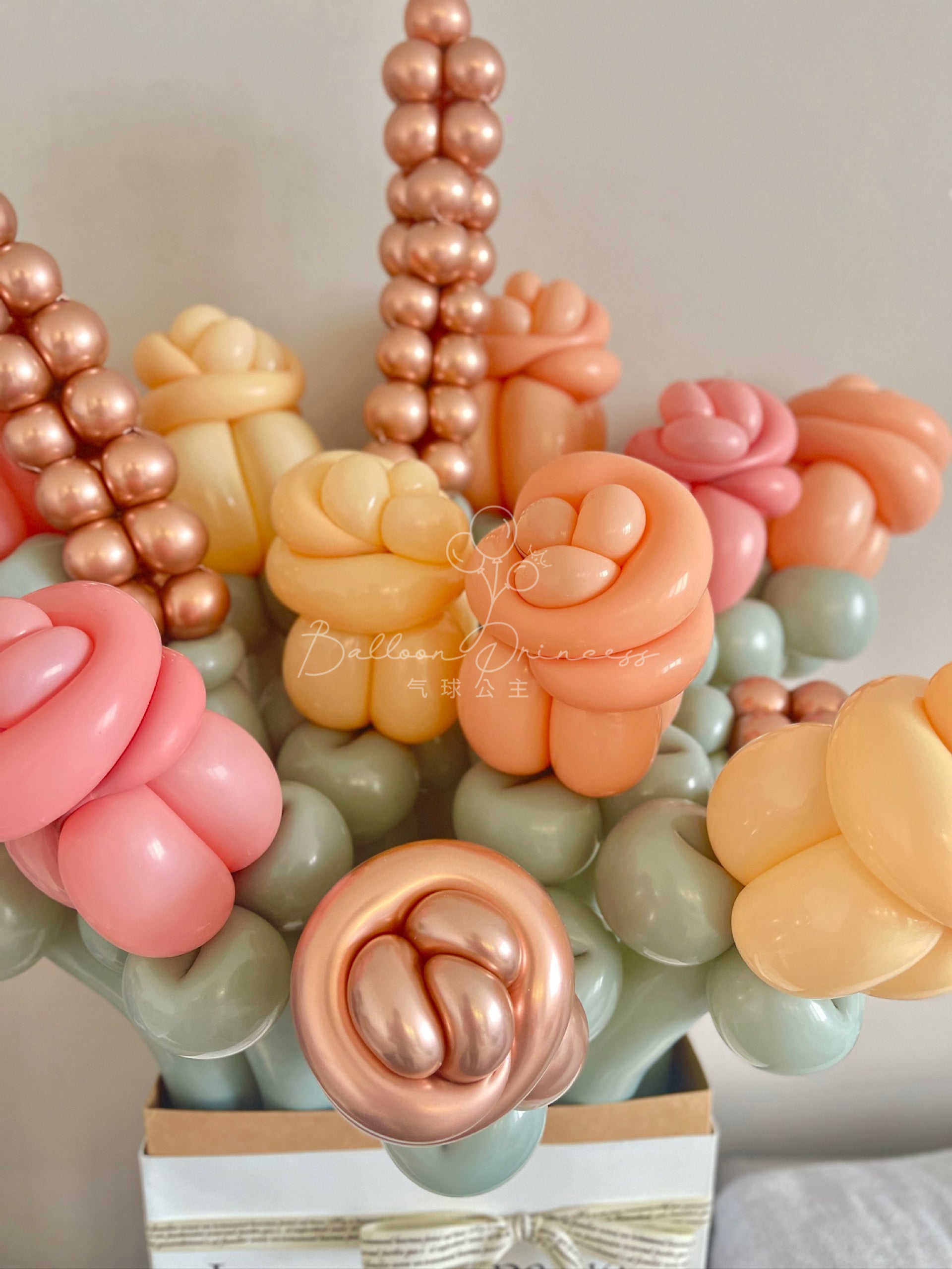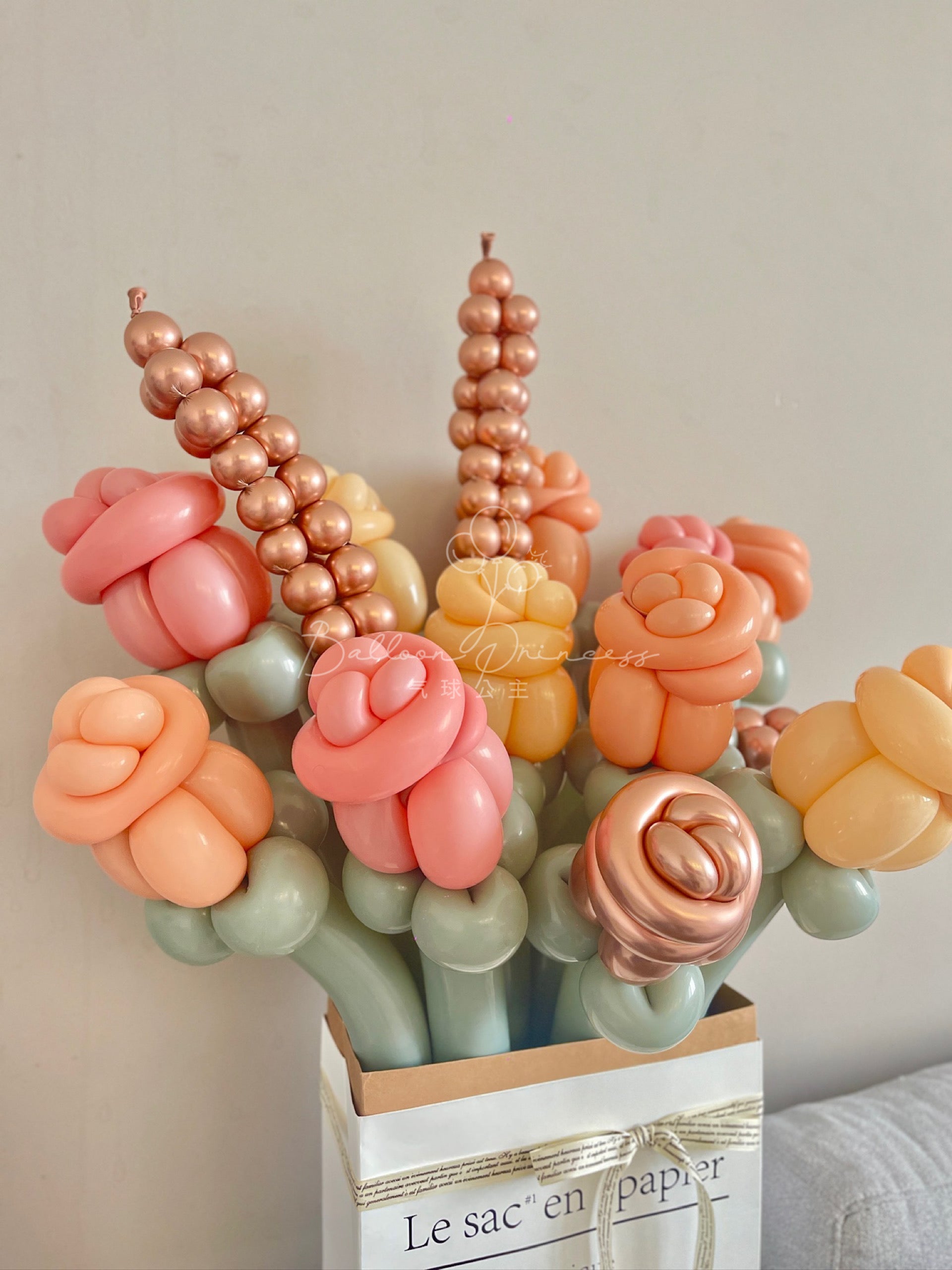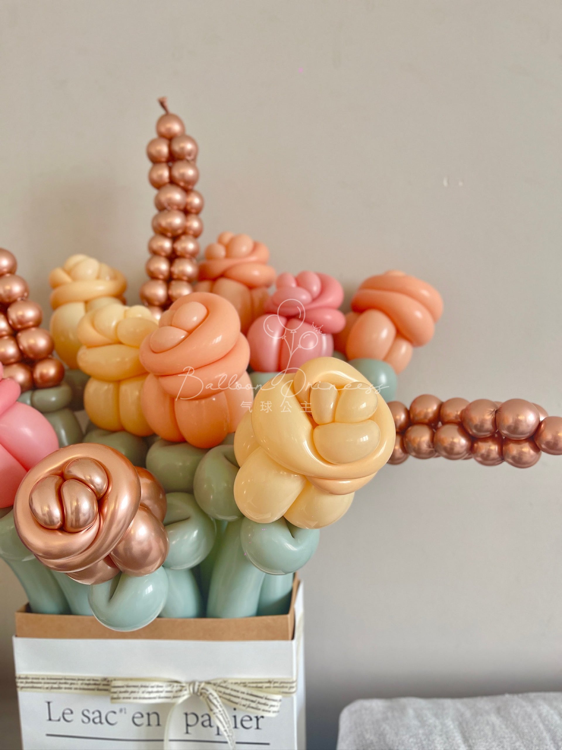 A causa della natura della produzione artigianale, ogni bouquet di arte con palloncini può variare nelle dimensioni e nei dettagli.